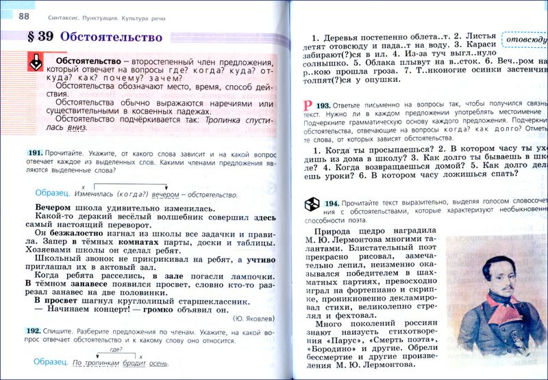Ладыженская Т.А., Баранов М.Т., Тростенцова Л.А. и др. Учебник входит в переработанную в соответствии с Федеральным государственным образовательным стандартом основного общего образования линию УМК Т. А. Ладыженской, М. Т. Баранова, Л. А. Тростенцовой и др. Обновлённый учебник реализует идею интегрированного обучения языку и речи, предполагающего формирование лингвистической и коммуникативной компетенций, а также привлечение большого объёма сведений культурологического характера. Новое художественное оформление, усовершенствованный методический аппарат учебника способствуют оптимизации учебного процесса.