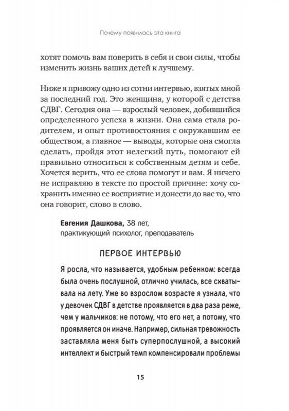 Когда ребенок не может слушаться. Воспитание детей с СДВГЧто делать, если в семье растет непослушный нехочуха? Ему сложно долго заниматься одним делом и контролировать эмоции, кажется, что у него внутри постоянно работает моторчик. Родители, бабушки и дедушки, воспитатели и учителя хватаются за голову, когда даже обычные вещи — сидеть спокойно или надеть носки — не даются ребенку. Если вы узнали в этом описании своего малыша, вам пригодится эта книга. В ней вы найдете проверенные рекомендации по воспитанию детей с проблемным поведением, в том числе с СДВГ; получите поддержку и необходимые знания; поймете, что и как вам делать, чтобы из непослушного нехочухи вырастить самостоятельного и счастливого человека.